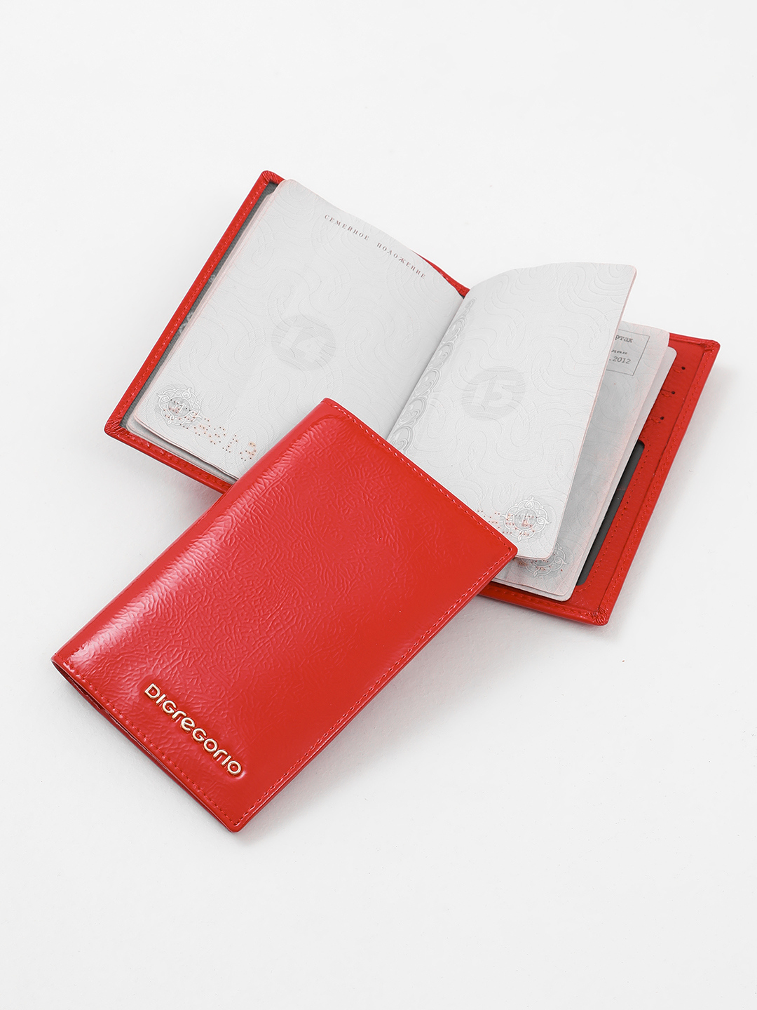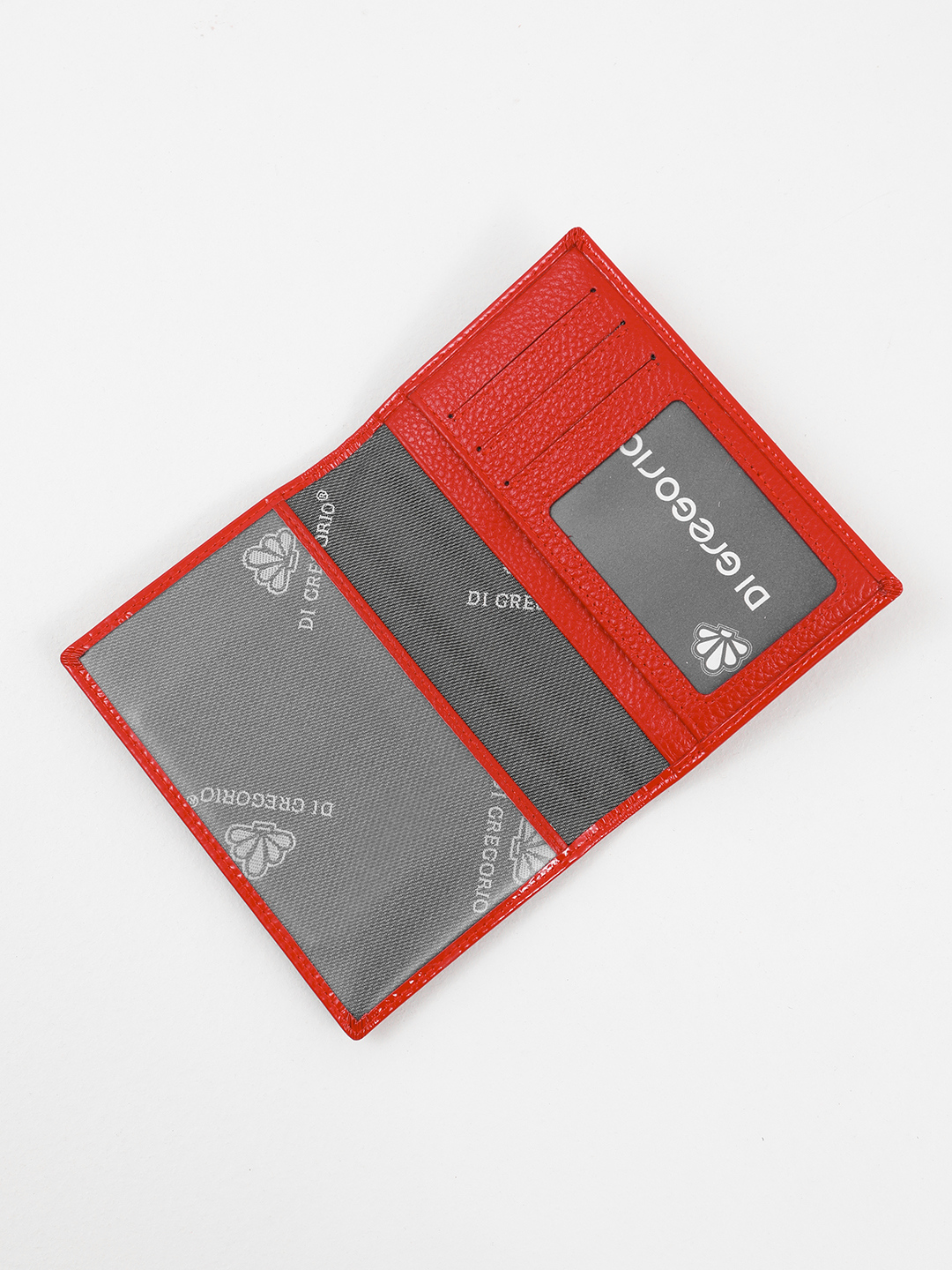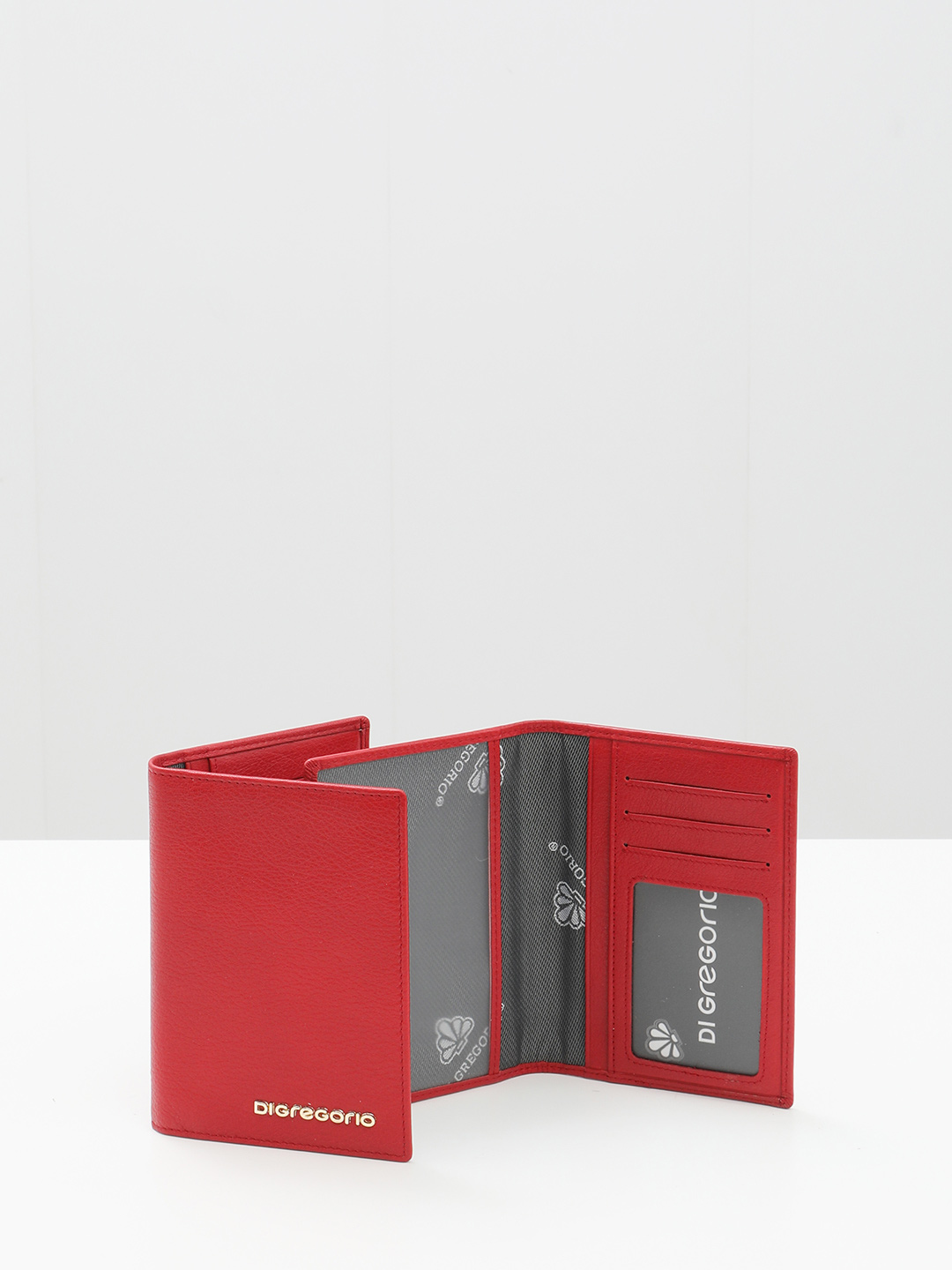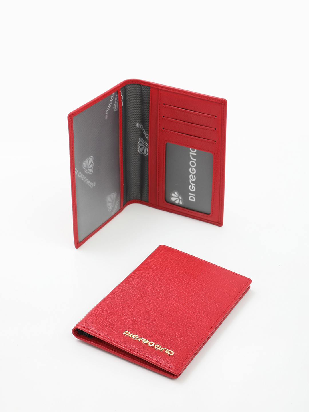 Минималистичная обложка для паспорта c золотистым логотипом Di Gregorio красного цвета