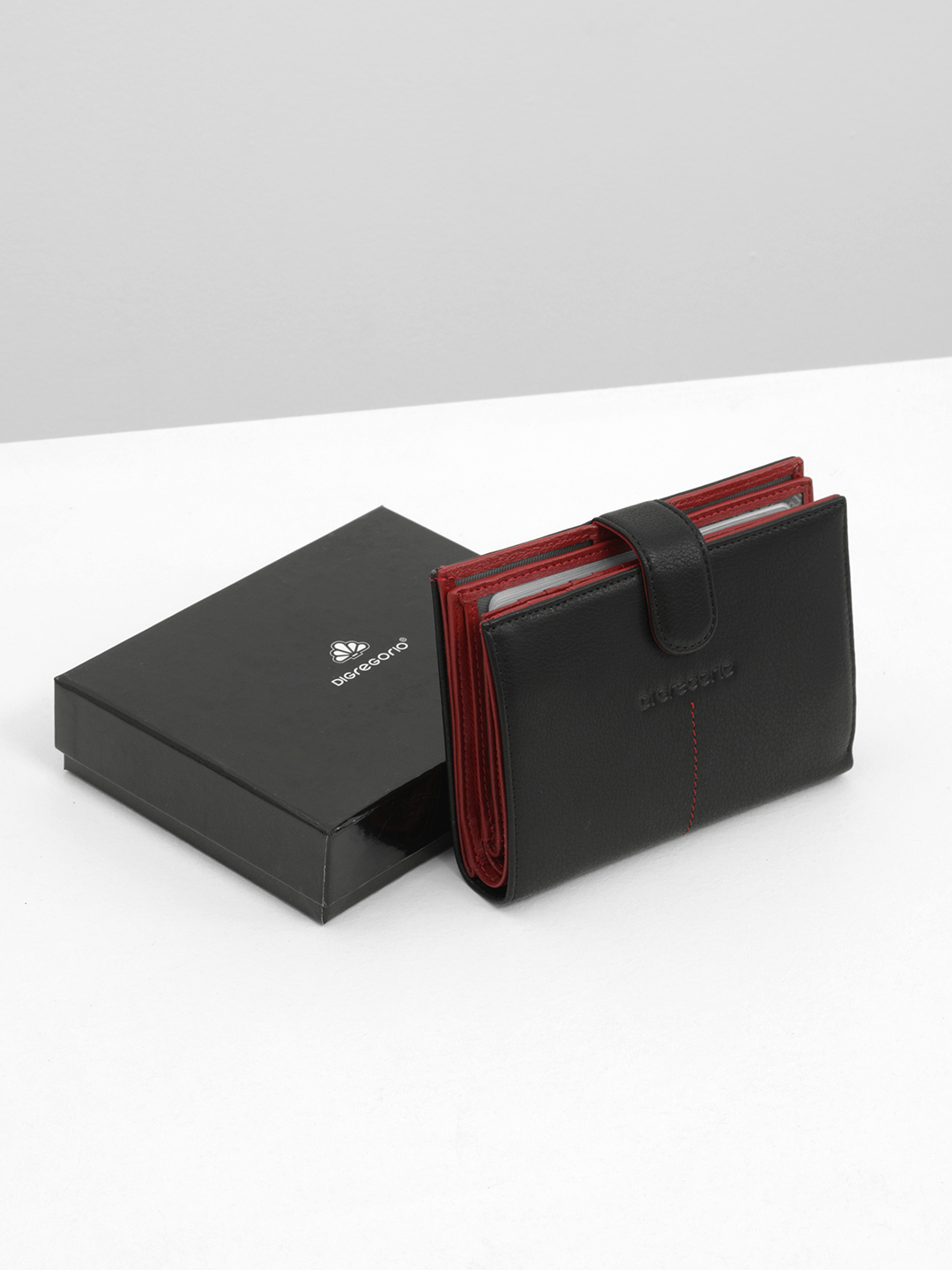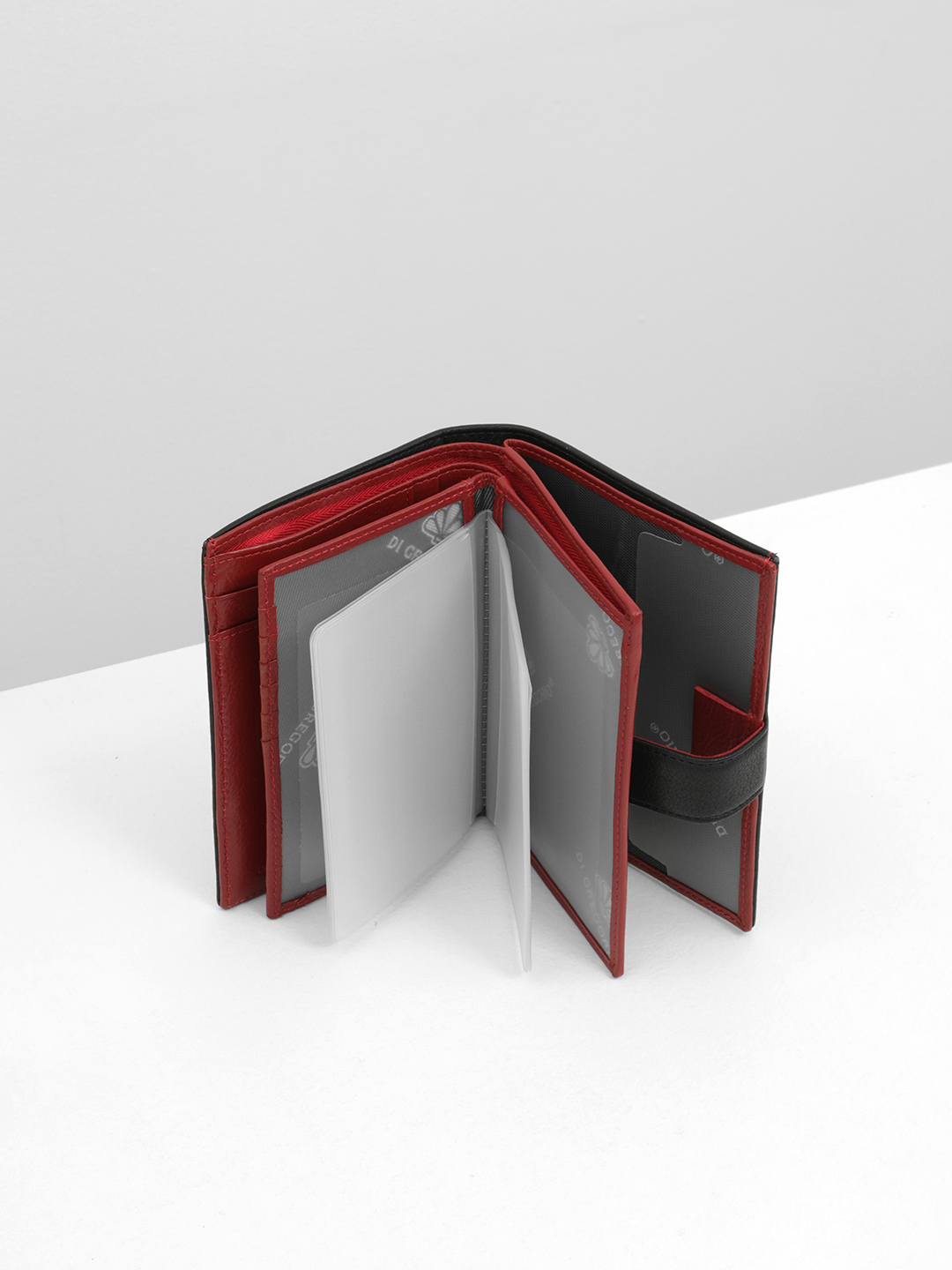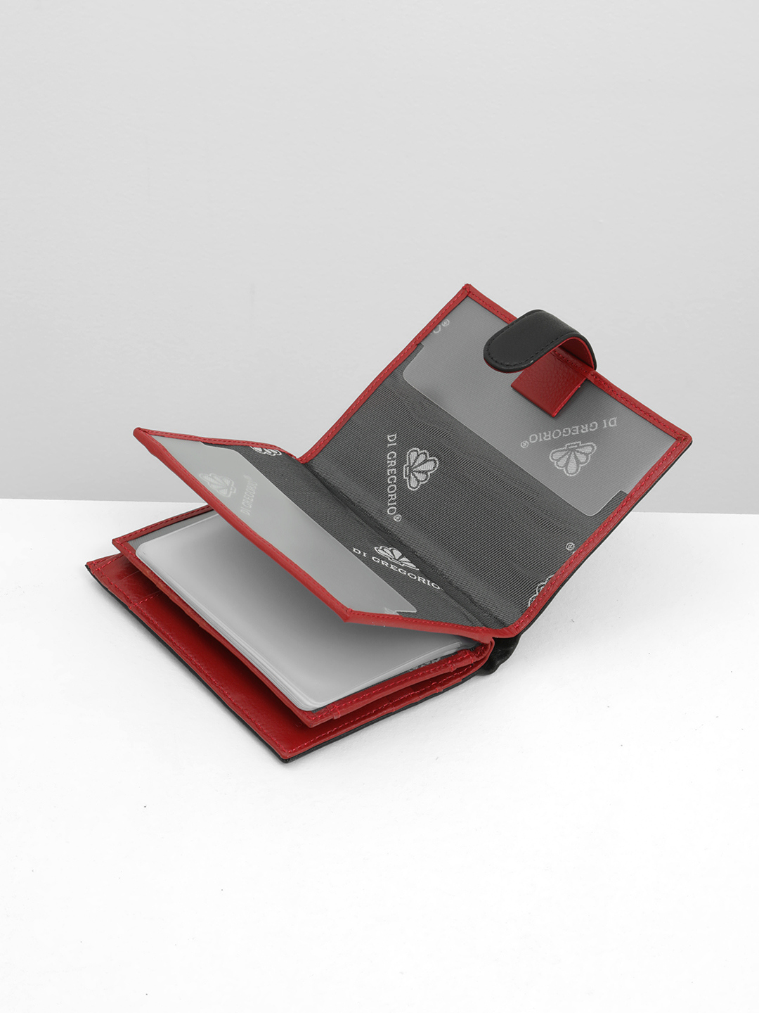 Портмоне-обложка для документов от Di Gregorio в черном цвете с красной внутренней отделкой