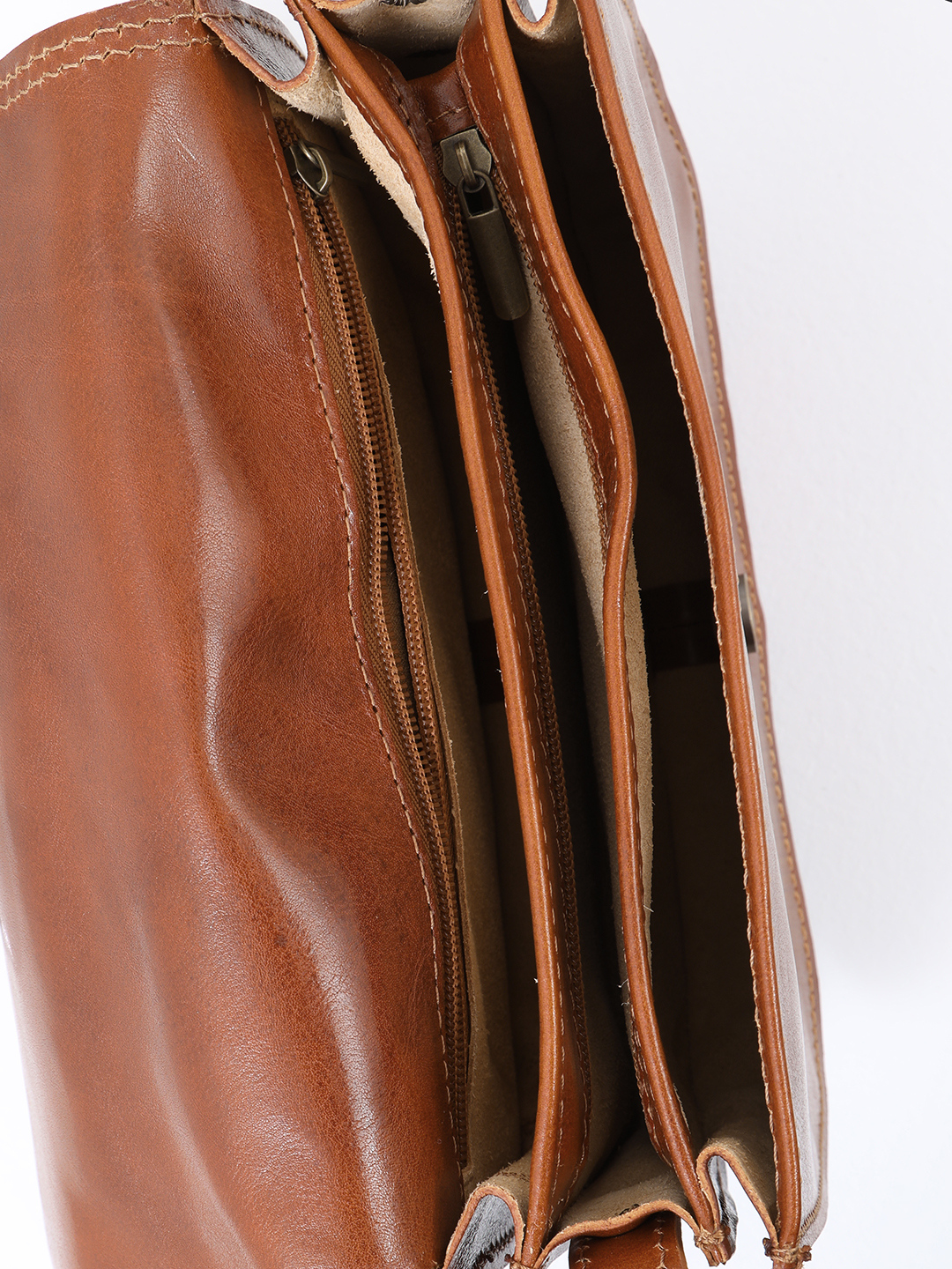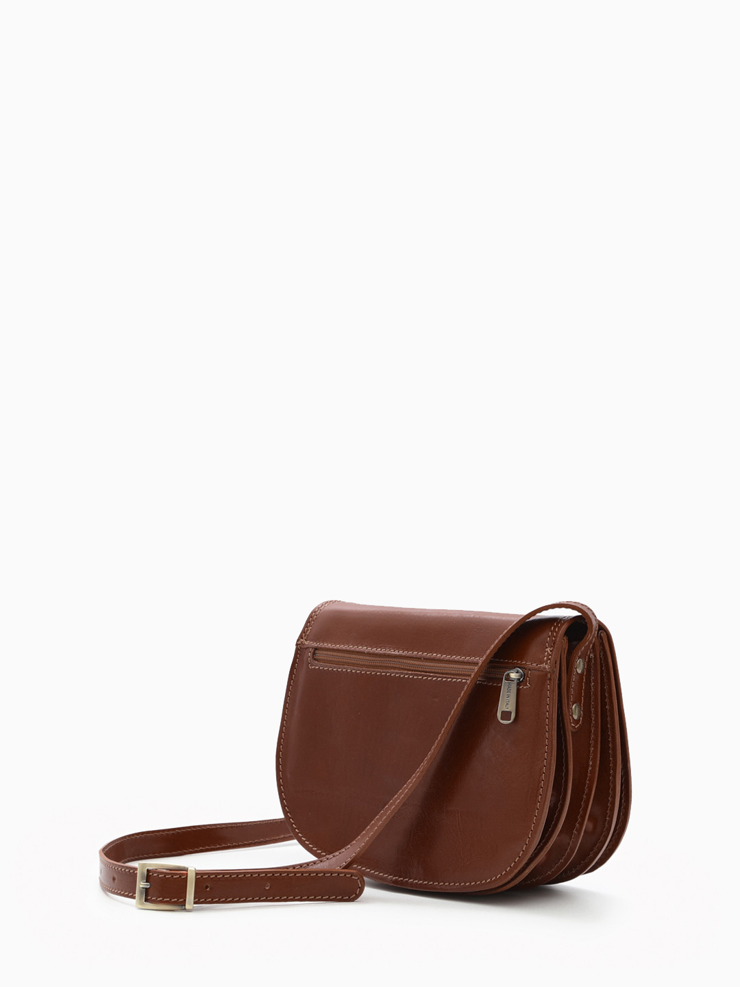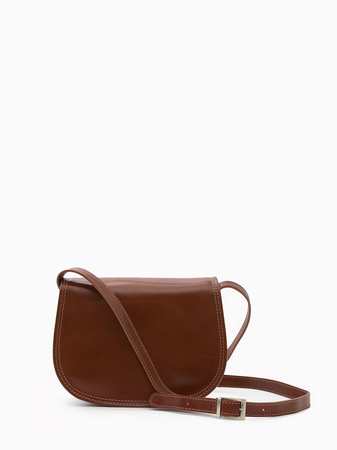Полукруглая кросс-боди с регулируемым ремнём от FOLLE из кожи vacchetta коричневого цвета