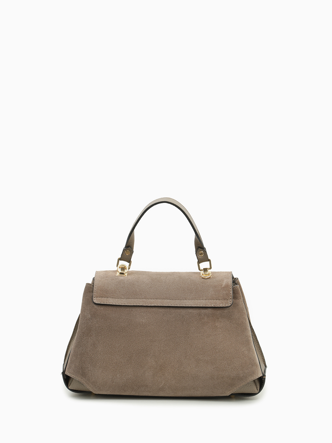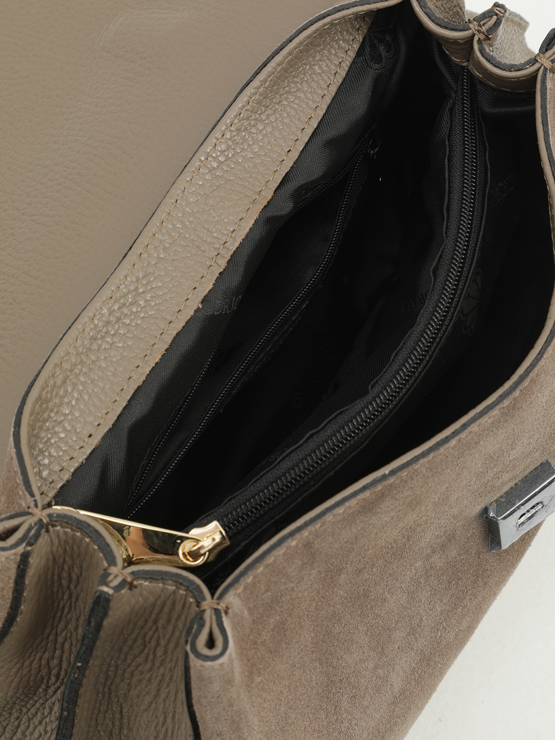 Небольшая классическая сумка от бренда Di Gregorio с тремя отделами в цвете тауп
