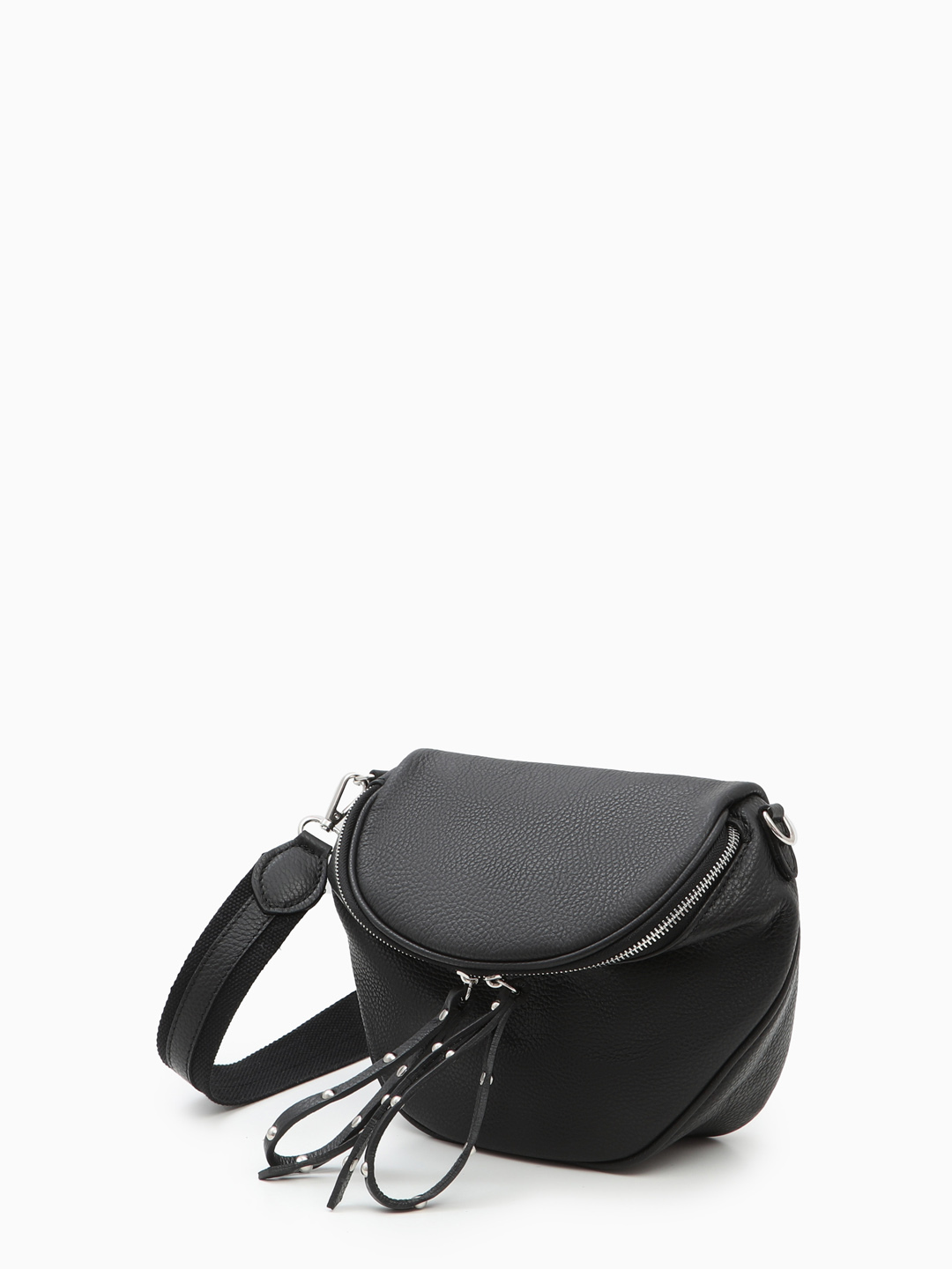 Полукруглая мягкая кросс-боди с длинными кожаными пуллерами с клёпками от FOLLE в чёрном цвете