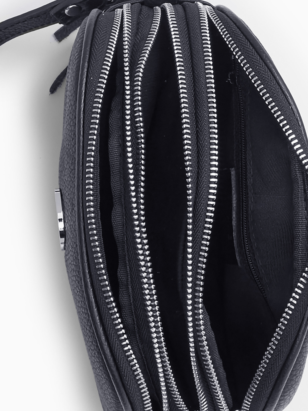 Сумка-хобо от бренда Di Gregorio с тремя отделами в чёрном цвете