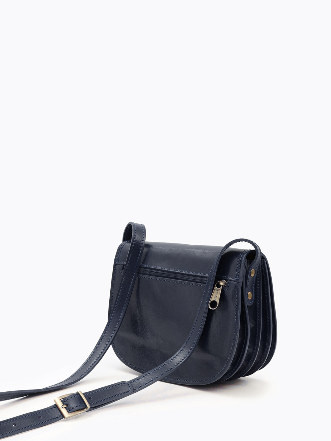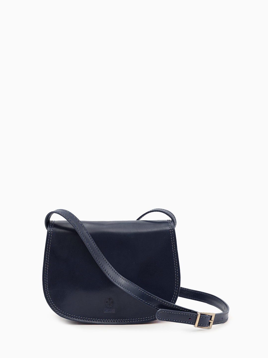 Полукруглая кросс-боди с регулируемым ремнём от FOLLE из кожи vacchetta синего цвета